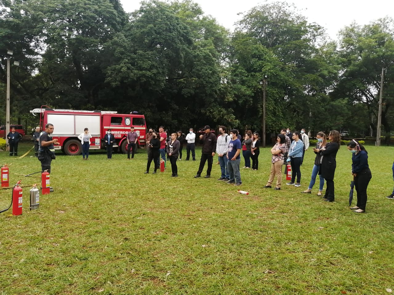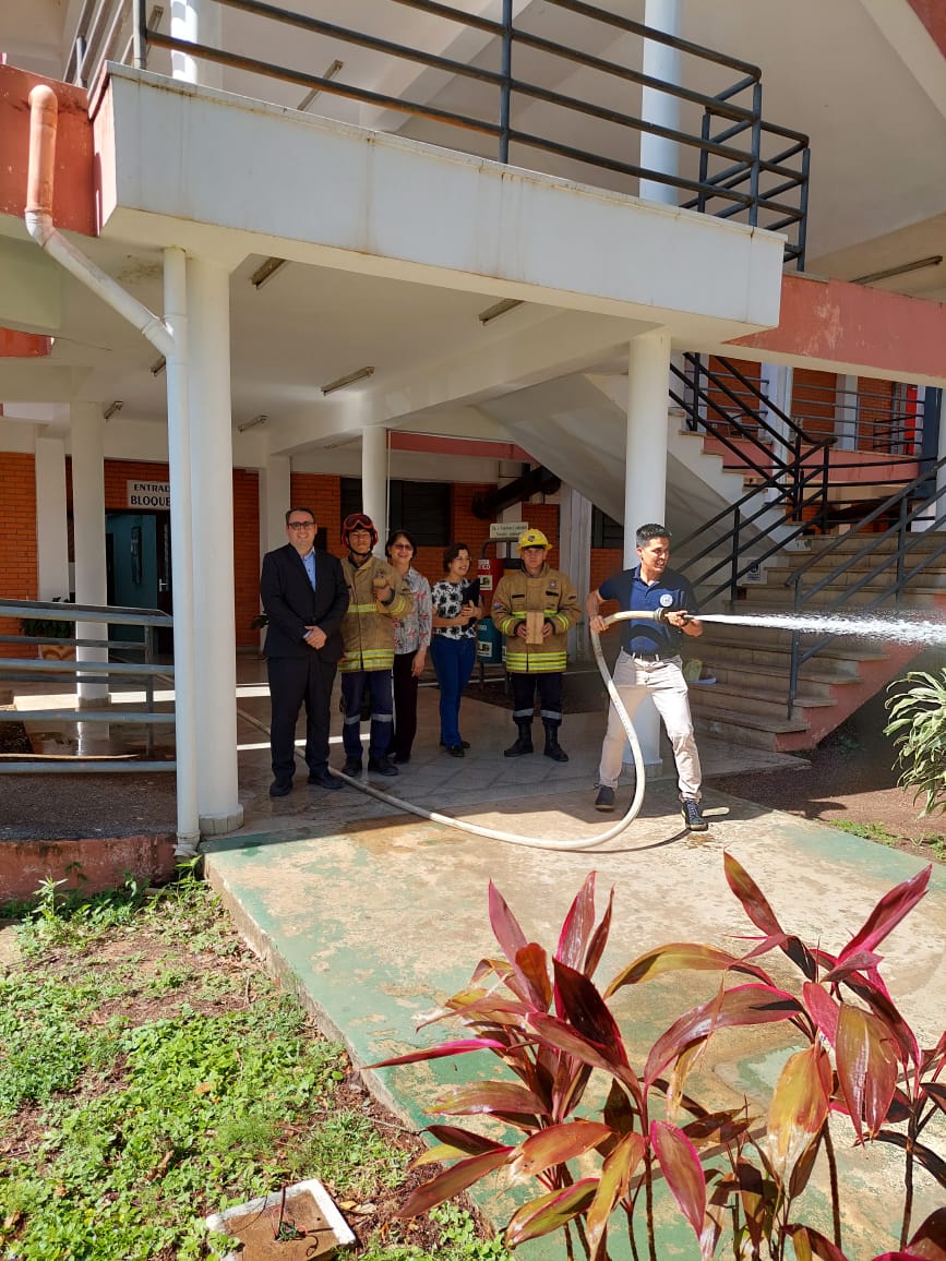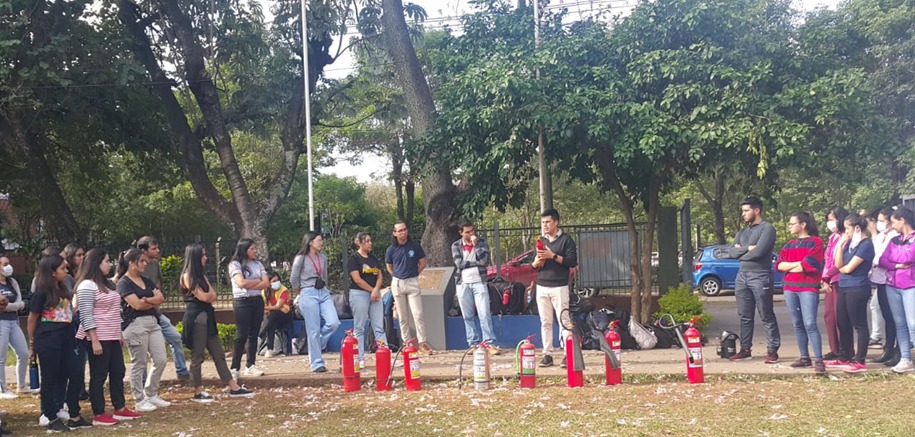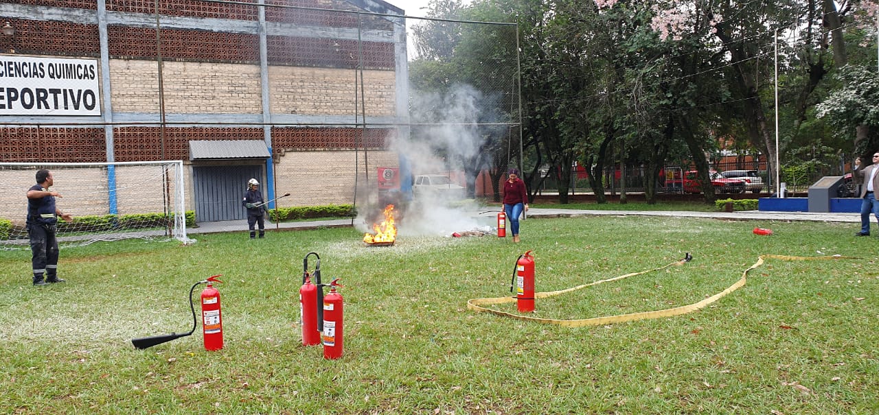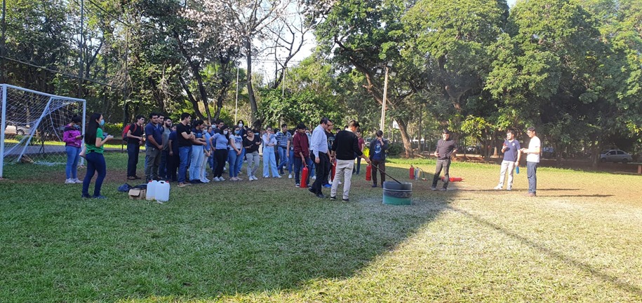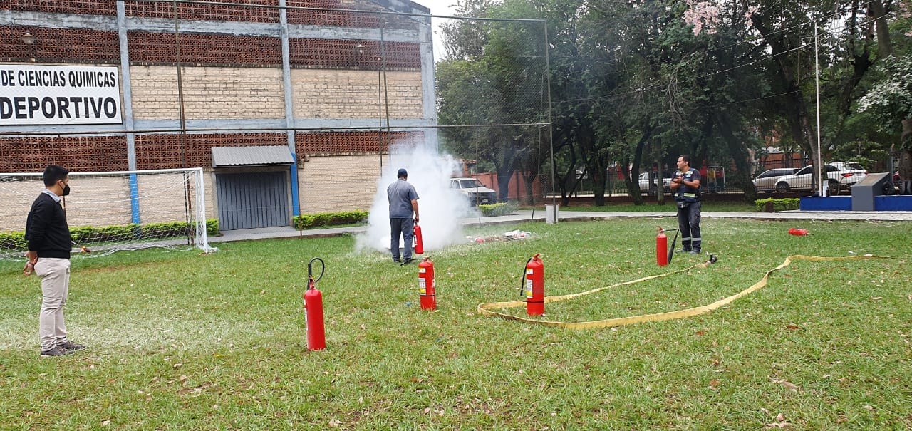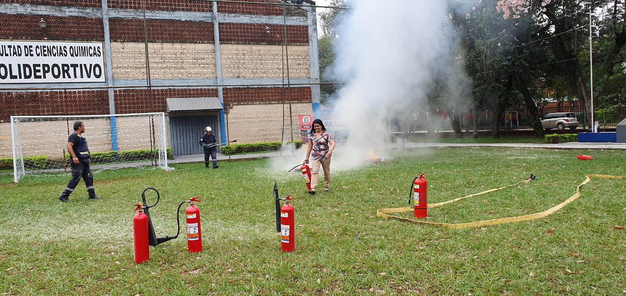 - Práctica sobre uso de Extintores con los Funcionarios y Estudiantes de la FCQ – UNA.