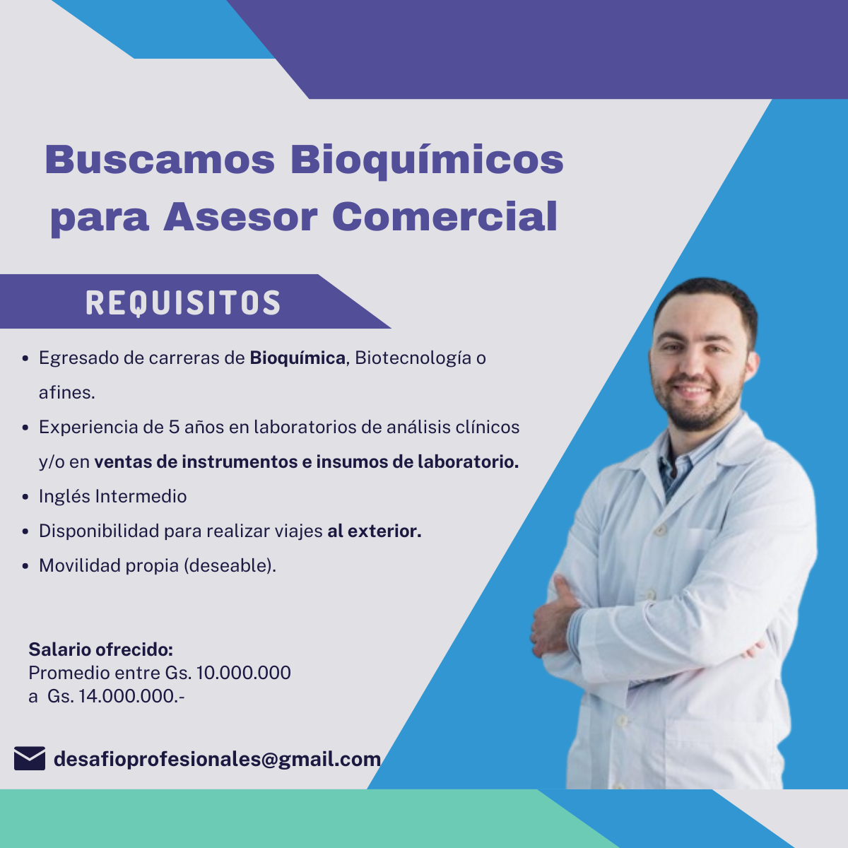 liderando equipos en el área de Bioquímica y tenés movilidad propia (excluyente).