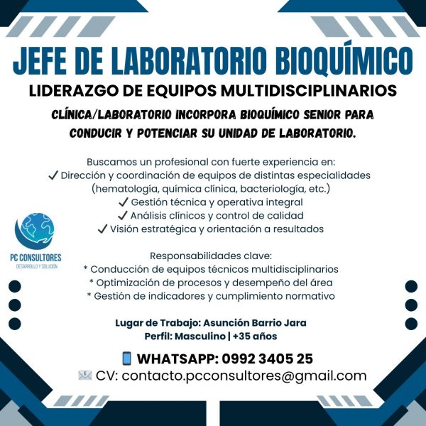 – Perfil requerido: Bioquimico- Jefe de Laboratorio