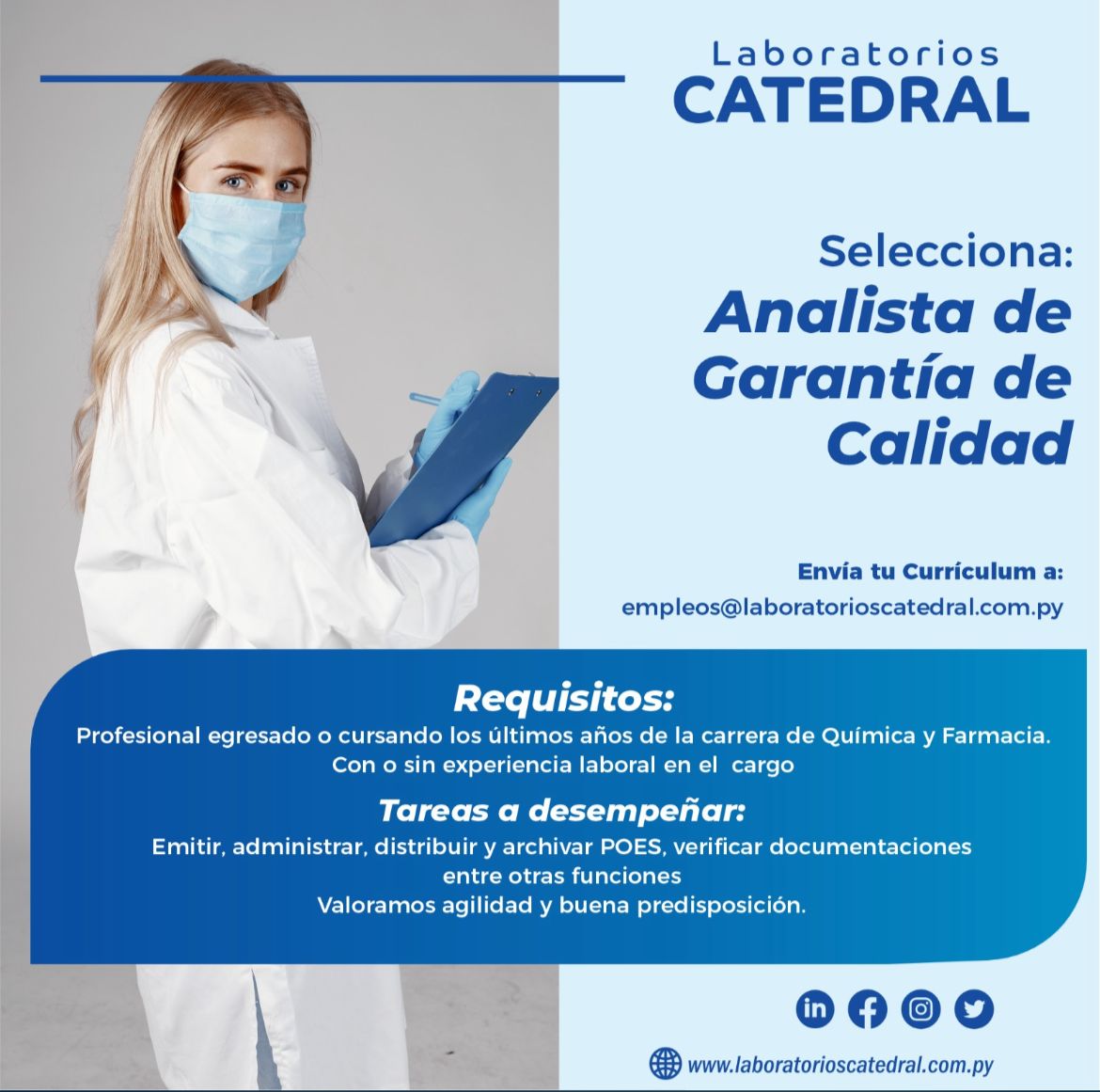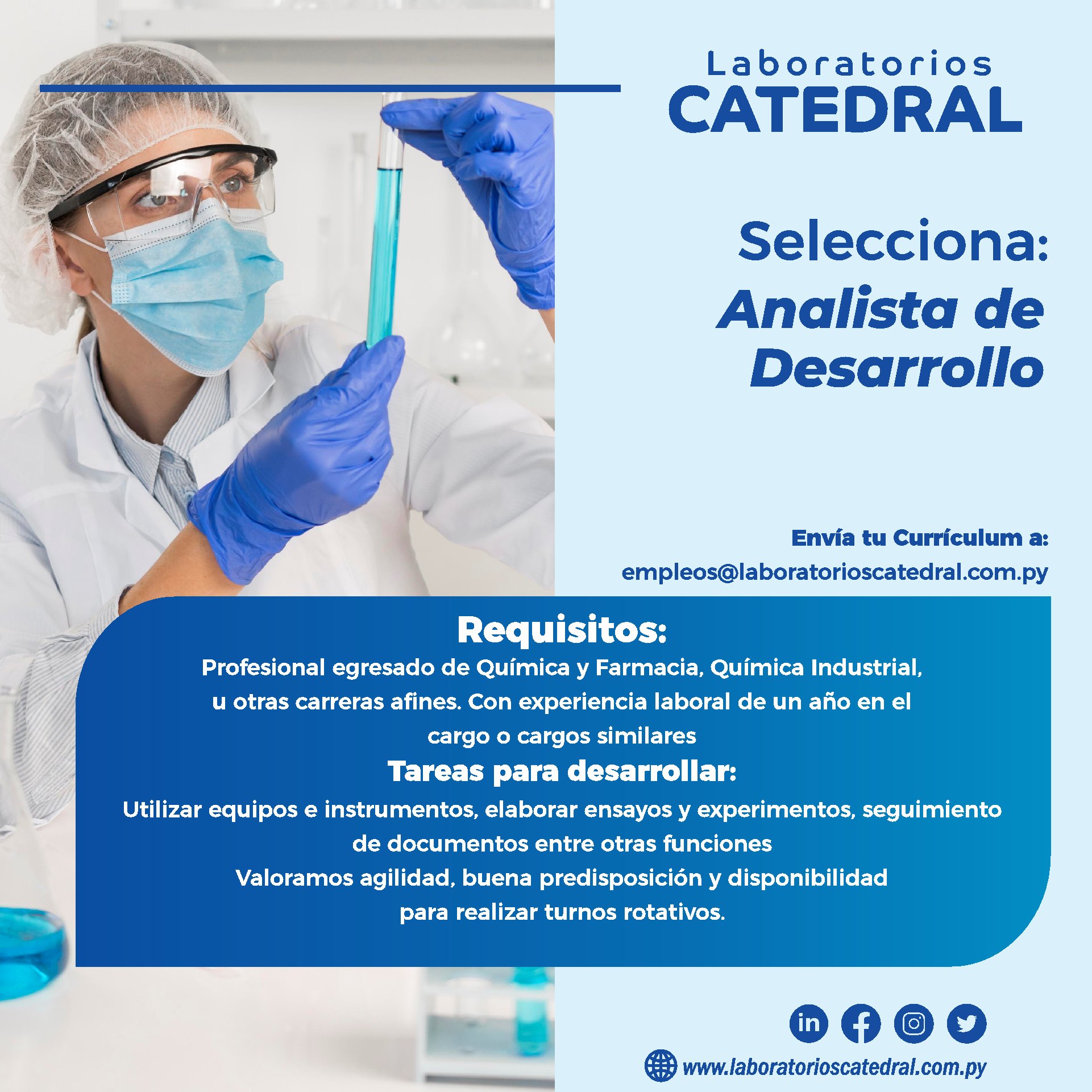 – Puesto a ofrecer: AUXILIAR DE LABORATORIO – DESARROLLO