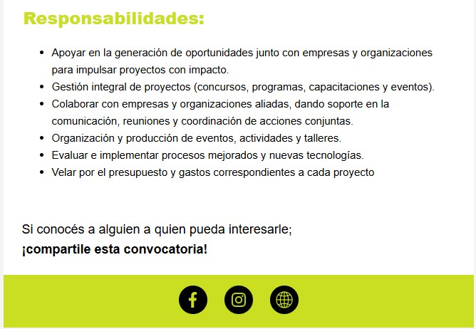 Link para la postulación: https://docs.google.com/forms/d/e/1FAIpQLScUPOvHOP_TUxm-HULDtaAeWm79myM3CwhqYq-BfM9L24R5VA/viewform