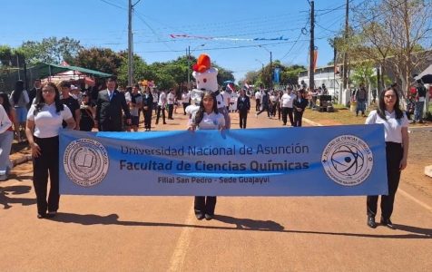 Miembros de la Filial de la FCQ-UNA, en el Departamento de San Pedro, participaron del Desfile Estudiantil desarrollado en el marco conmemorativo por los 33 años del Distrito de Guajayvi, donde se encuentra la Filial de la FCQ-UNA
